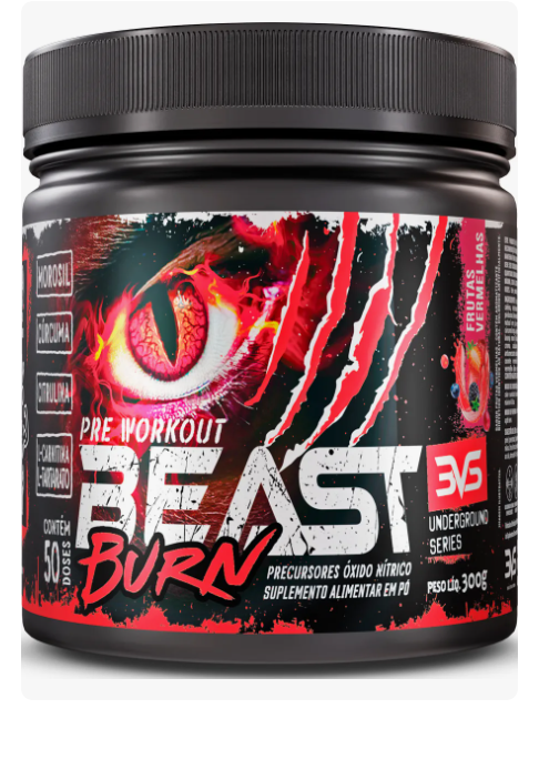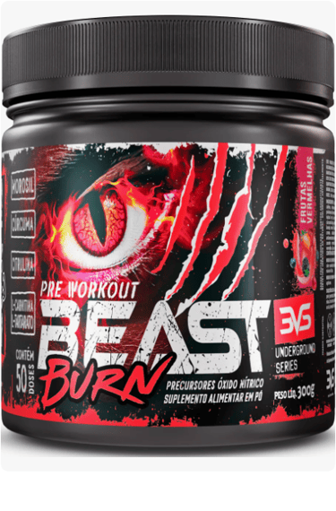 Pré Treino Beast Burn 300g - Sabor Frutas Vermelhas - Fórmula Exclusiva