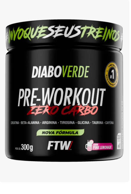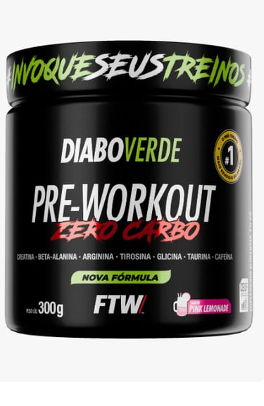 Pre Treino Pre Workout Zero Carbo com Creatina Pote 300g Sabor Pink Lemonade FTW - DIABO VERDE