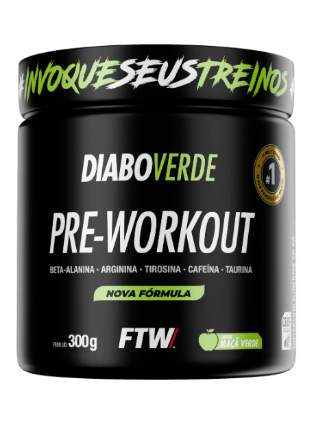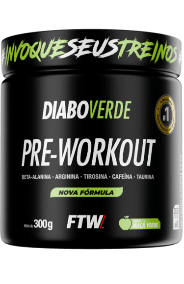 Suplemento Em Pó Pre Treino Pre Workout 300g Sabor Maça Verde FTW - DIABO VERDE
